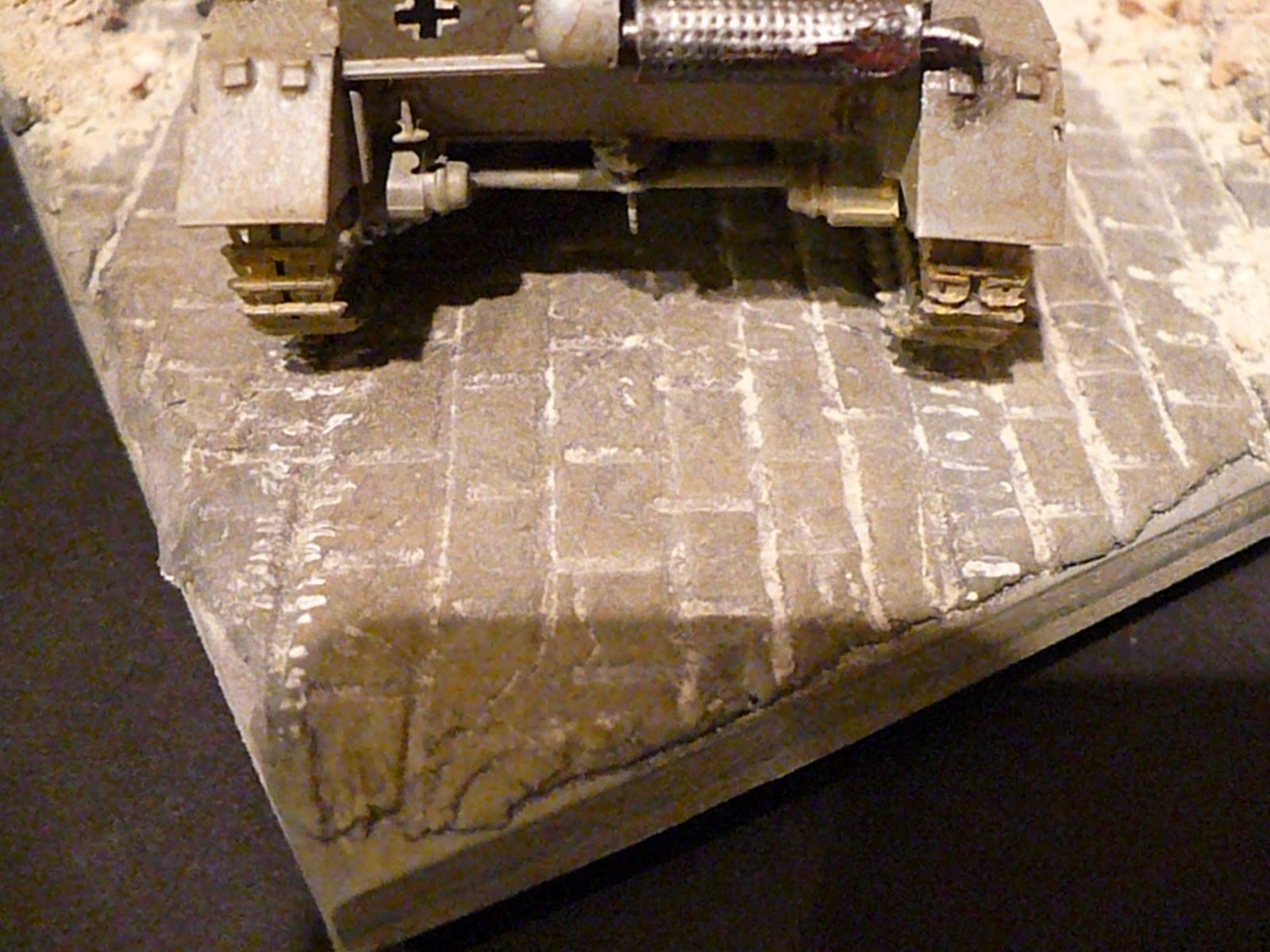 The Zimmerit was a paste of barium sulphate (40%), polyvinyl acetate (PVA) to 25%, ocher pigment (15%), sawdust (10%) and sulfite zinc for the remaining 10%, which was used to prevent magnetic mines stick to the armor of the media. It was developed after the battle of Kursk in July 1943, and applied on almost all armored up to 1944, when it was shelved because there was doubt (never confirmed by tests) that the explosion of anti-tank could ignite. The model is achieved with a soldering iron flat head resting on the surface or on top of a thin layer of plaster model and then impressing the notches with a screwdriver.
