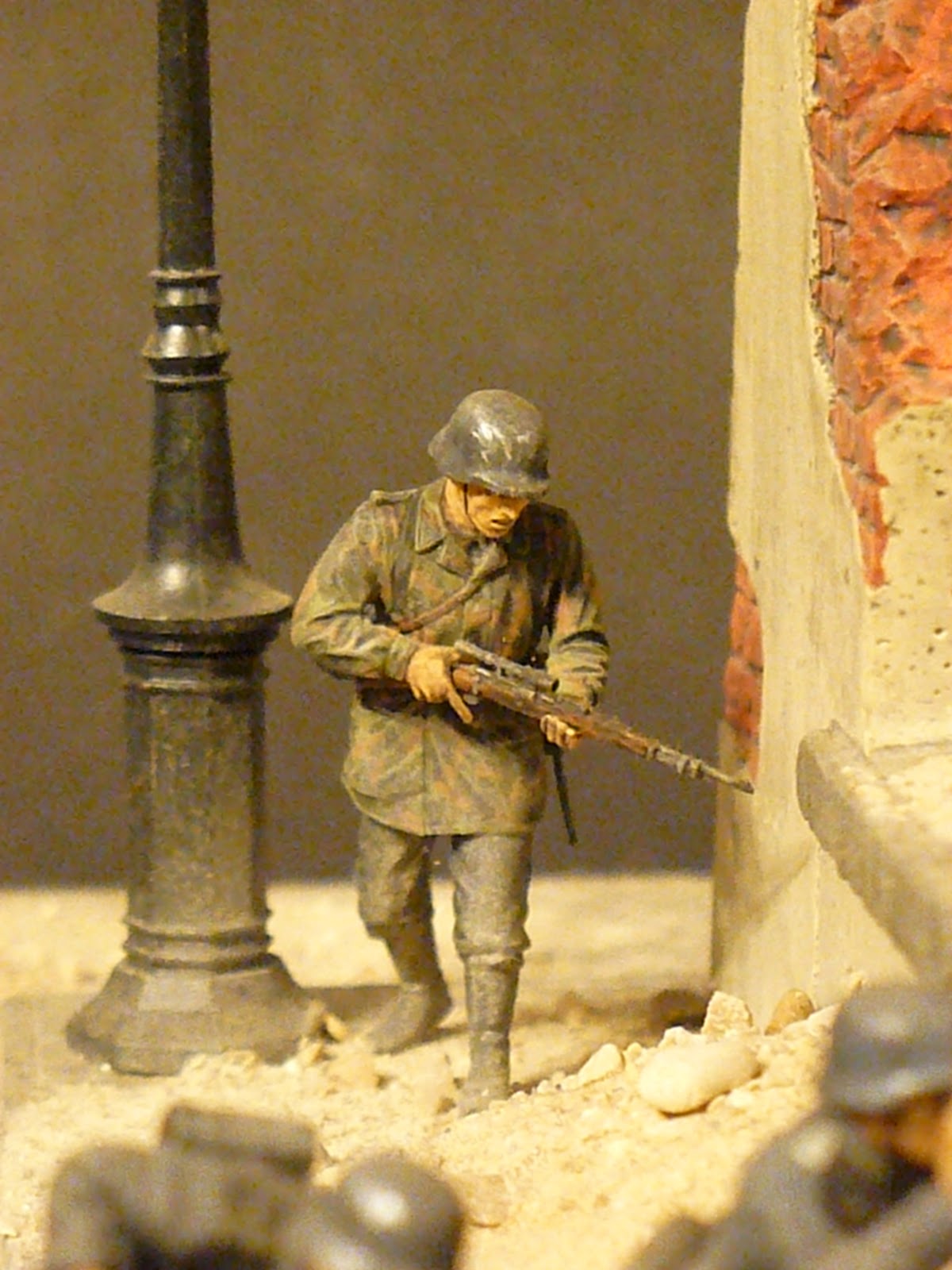 The most common camouflage worn by German soldiers in World War II (from 1943 onwards) was known as Platanenmuster : This is done using a brown background with mottled green and ocher and dots, data with a toothpick in two additional tones of green and two brown. There are many other versions, more or less intermittently used by various departments, for which reference to other sources.