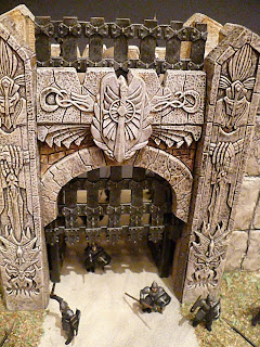 The door is a play like "Heroclix," which involves the use of miniatures and scenery. Obviously, it was necessary to apply multiple coats of washes and dry brush to smooth the appearance of the walls.